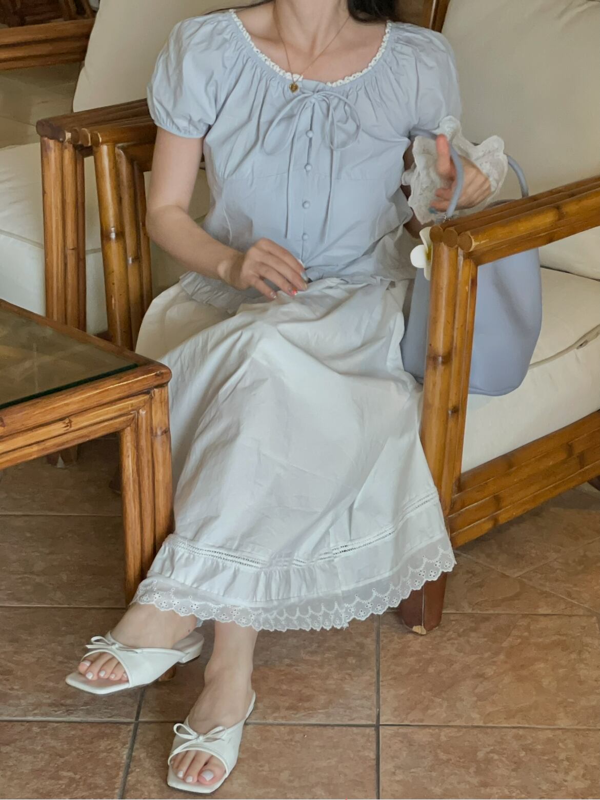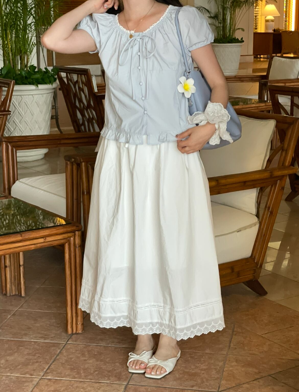 裾にレースが施されていてラブリーなのがポイント!